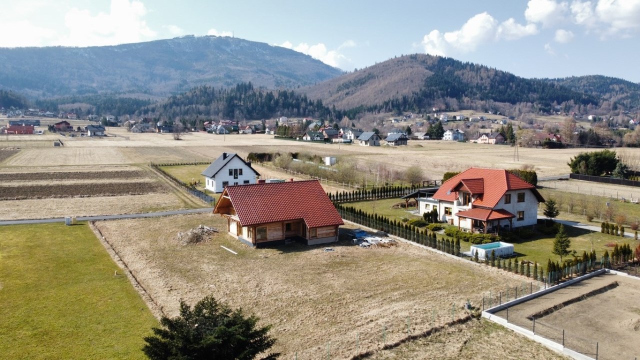 Działka budowlana o powierzchni 2243 m2, zlokalizowana w Lipowej (powiat żywiecki, gmina Lipowa) zbudowana nowym budynkiem mieszkalnym, wykonanym z bali drewnianych. Nieruchomość urokliwie położona u podnóża Skrzycznego, doskonale nasłoneczniona i posiadająca duże walory widokowe. Z działki rozpościera się widok na okoliczne góry, a w oddali widać Jezioro żywieckie. Budynek o powierzchni całkowitej około 238 m2 (powierzchnia użytkowa to około 165 m2), wykonany z bali drewnianych, kryty dachówką ceramiczną. Bardzo przemyślany układ pomieszczeń, gwarantujący komfort mieszkania oraz dający duże możliwości adaptacyjne. Parter: wiatrołap, hall, salon, kuchnia, pomieszczenie gospodarcze, spiżarnia, WC, łazienka z sauną, dwa pokoje. Poddasze: przedpokój, łazienka, dwa duże pokoje. Media: prąd, gaz, szambo, studnia głębinowa. Instalacje: wodna, kanalizacyjna, elektryczna, C.O. gazowe. Dojazd całoroczny drogą asfaltową. Bezpośrednie sąsiedztwo stanowi luźna zabudowa mieszkaniowa, dalej pola i las. Teren bardzo atrakcyjny. Nieruchomość doskonale nadaje się do zamieszkania całorocznego jak również możliwe jest wykorzystanie komercyjne. Stopień wykończenia wnętrza pozwala na finalną realizację według własnych upodobań. Wyjątkowa oferta godna polecenia. Szczegóły dostępne w biurze- zapraszamy na prezentację.