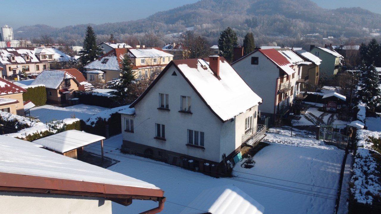 Działka budowlana o powierzchni 624 m2, zlokalizowana w Żywcu, zabudowana budynkiem mieszkalnym. Budynek o powierzchni użytkowej około 150 m2, parterowy z użytkowym poddaszem, w całości podpiwniczony, murowany, kryty blachą trapezową. Stan techniczny dobry, standard niski - budynek do remontu. Budynek o bardzo dużym potencjale i dużych możliwościach adaptacyjnych. Media: prąd, wodociąg, kanalizacja, gaz. Układ pomieszczeń: Parter: wiatrołap, przedpokój, kuchnia, dwa pokoje, łazienka i spiżarnia. Poddasze: dwa pokoje i strych. Piwnica: kotłownia i pomieszczenia gospodarcze. Dodatkowo na działce znajduje się nowa altana i budynek gospodarczy. Całość działki ogrodzona i zagospodarowana. Oferowany budynek stanowi solidną bazę do remontu i wykończenie według własnych potrzeb. Dużym atutem jest niewątpliwie lokalizacja oraz bardzo dobra komunikacja z drogą ekspresową Bielsko-Biała - Zwardoń. Bezpośrednie sąsiedztwo to zabudowa mieszkaniowa i usługowa. Zapraszamy na prezentację.
